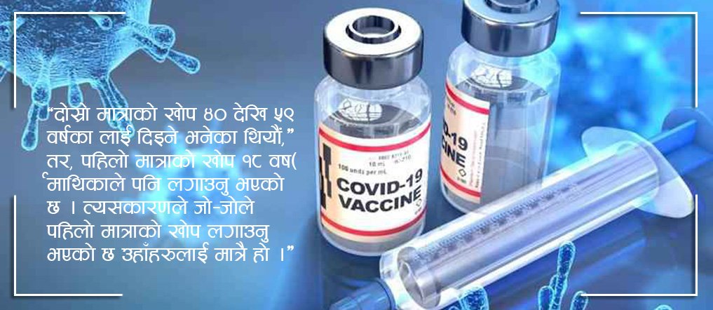 काठमाडौं, वैशाख २९ गते । नयाँ भेरियन्टको कोरोनाभाइरस (कोभिड–१९) महामारीको गम्भीर चपेटामा परेको बेला अवरुद्ध बनेको खोप अभियान पुनः सञ्चालनमा आउने भएको छ ।