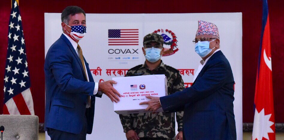 काठमाडौ, असार २८ गते । कोभ्याक्स कार्यक्रमअन्तर्गत अमेरीकाले दिने भनेको जोनसन एन्ड जोनसनको १५ लाख डोज खोप सोमबार नेपाललाई हस्तान्तरण गरिएकाे छ ।