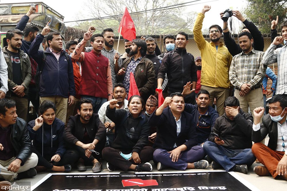 काठमाडौँ — पेट्रोलियम पदार्थको मूल्यवृद्धि विरोधमा खनाल-नेपाल पक्ष विद्यार्थी संगठन अनेरास्ववियुले विरोध प्रदर्शन गरेका छन् ।