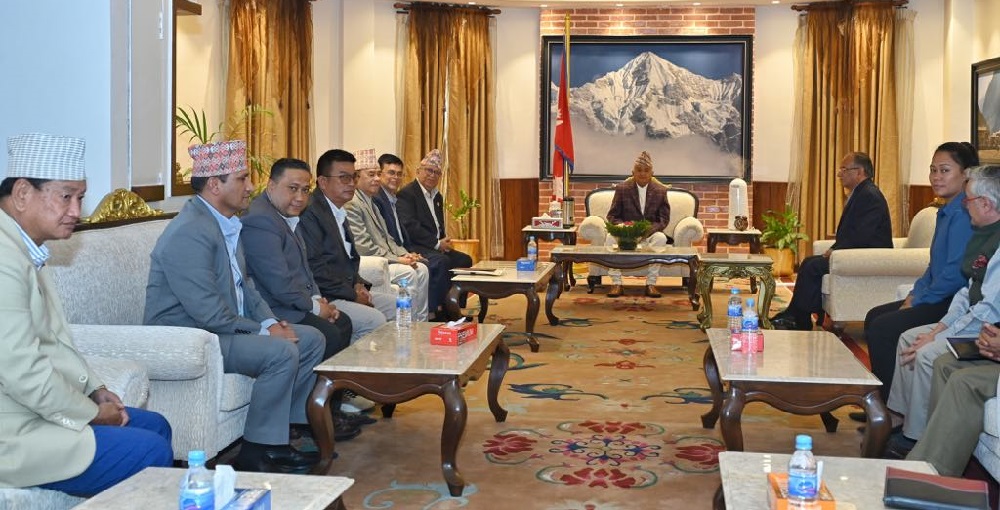 काठमाडौँ, कात्तिक ७ गते । राष्ट्रपति रामचन्द्र पौडेलसँग संसदमा प्रतिपक्षमा रहेका दलका नेताहरूले भेट गर्नुभएको छ । बुधबार राष्ट्रपति भवन शीतल निवासमा प्रमुख प्रतिपक्षी दलका नेता एवम् नेकपा (माओवादी केन...