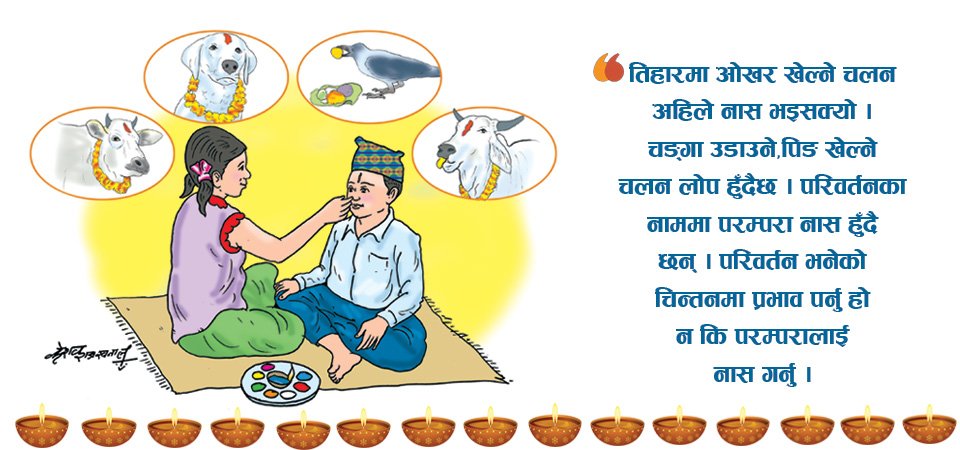 दशैँ भर्खरै मनाइयो । दशैँको रौनक मनबाट ओझेल पर्न भ्याएको छैन, अर्को ठूलो चाड तिहार हाम्रो समुन्ने आइसक्यो । यसको सङ्केत सङ्घीय राजधानी काठमाडौँले मात्र होइन, देशका प्रमुख बजारहरूले पनि दिन थालिसकेका छ...