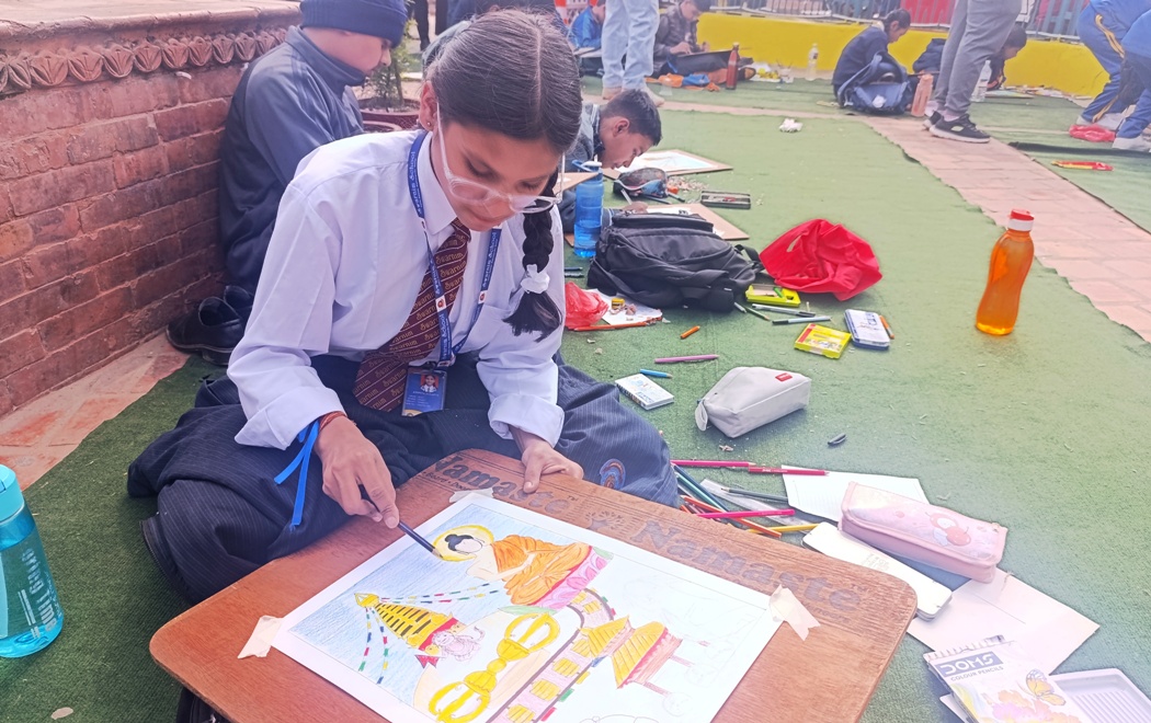 काठमाडौँ, फागुन १४ गते । काठमाडौँ महानगरपालिका-१५ का ३३ विद्यालयका ६० विद्यार्थीहरु आज स्वयम्भूमा चित्र कोर्न भेला भए । उनीहरुलाई स्वयम्भू महोत्सव आयोजक समितिले ‘विश्व सम्पदा सूचीमा सूचिकृत स्वयम्भू क...