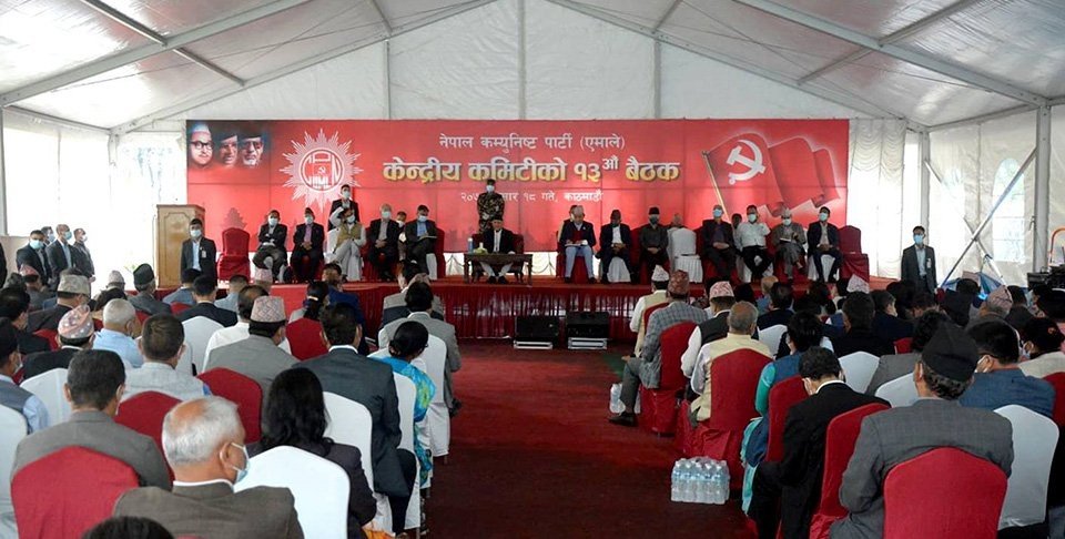 काठमाडौं, असार १९ गते । सत्तारुढ दल नेपाल कम्युनिष्ट पार्टी (एमाले) को केन्द्रीय कमिटी बैठक आज पनि बस्दैछ । प्रधानमन्त्रीको सरकारी निवास बालुवाटारमा अपरान्ह ३ बजे शुरु हुने बैठकमा आज संगठनात्मक प्रस्त...