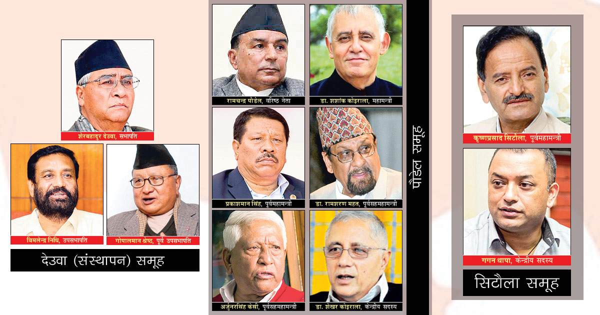 काठमाडौं : नेपाली कांग्रेसको सभापतिका लागि १२ जनाले दाबी गरेका छन्। वरिष्ठ नेता रामचन्द्र पौडेल पक्षमा मात्रै ८ जना दाबेदार छन्। सभापति शेरबहादुर देउवा पक्षमा देउवासहित विमलेन्द्र निधि र गोपालमान श्र...