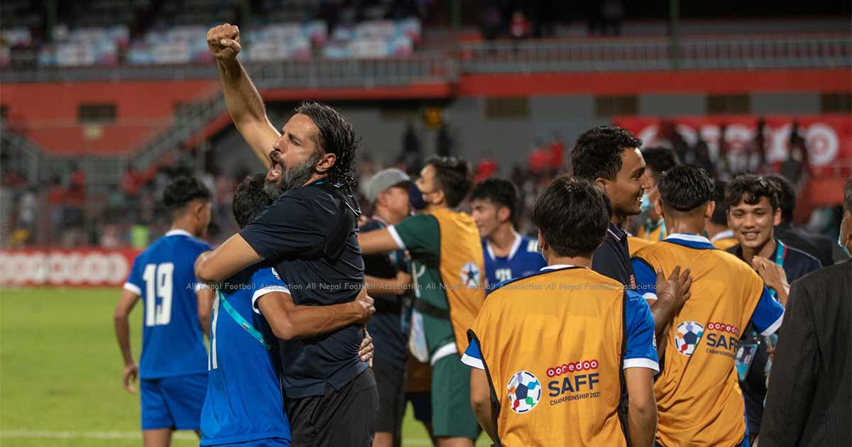 काठमाडौँ, असोज १९ गते । माल्दिभ्समा जारी दक्षिण एसियाली फुटबल (साफ) च्याम्पियनसिपमा नेपालले श्रीलङ्कालाई पराजित गरेको छ । गए राति माल्दिभ्सको मालेमा भएको खेलमा नेपालले श्रीलङ्कालाई ३–२ गोलअन्तरले हराए...